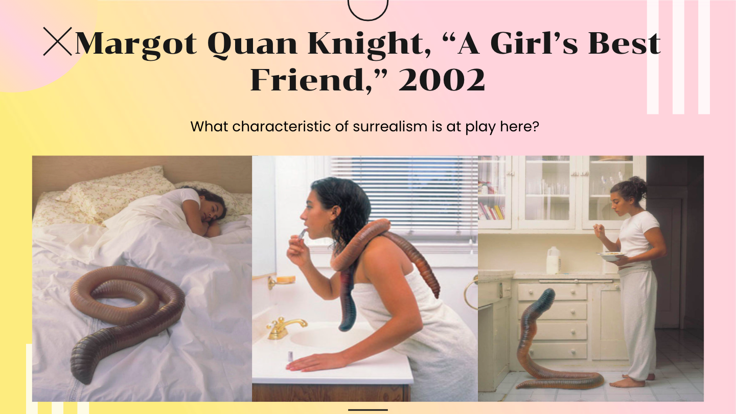 Next in our presentation (which can be found here), we go over five devices of Surrealism (3 are described above) and then go through examples of different Surrealist works.